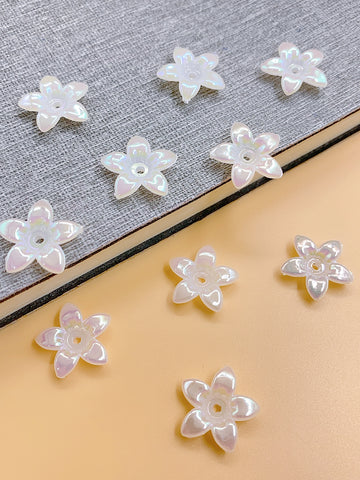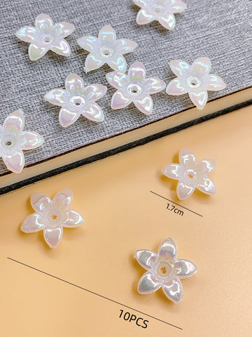 ABS Bright color imitation pearl five-petal flower straight hole beaded jewelry fake flower accessories pearl