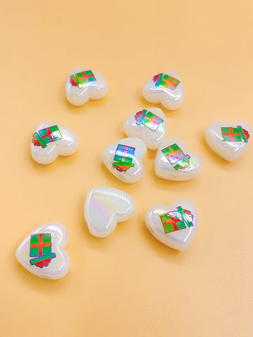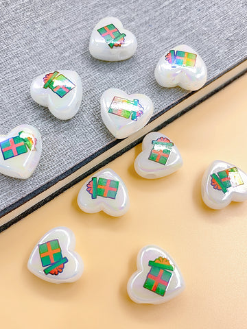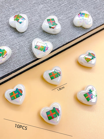 ABS imitation Pearl Bright Color series peach heart printing Christmas style diy handmade beading