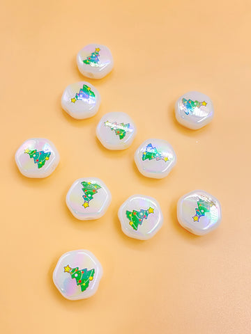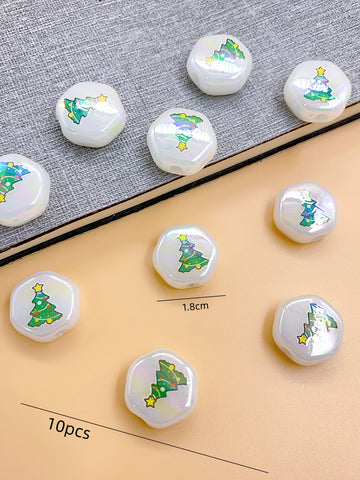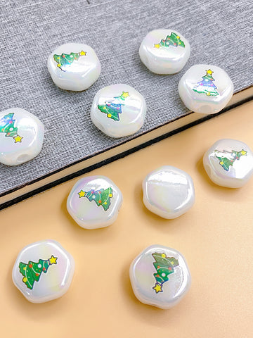 ABS imitation pearl Bright color series round shape straight hole printing Christmas style diy handmade beading