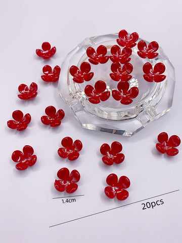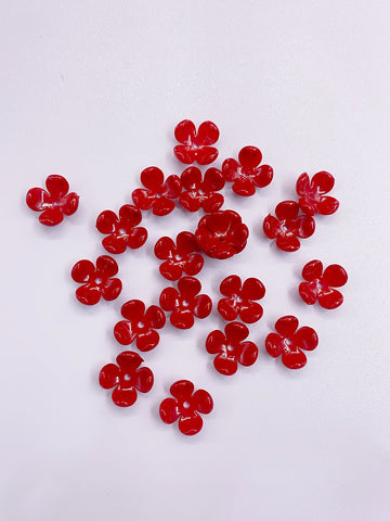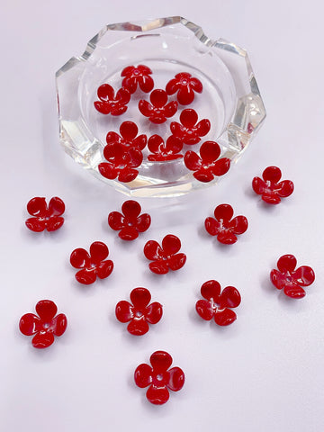 New abs imitation pearl four-petal flower bright oil red straight hole flower headwear Hair accessories diy handmade beading