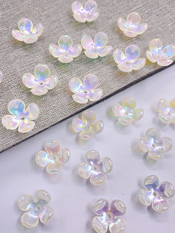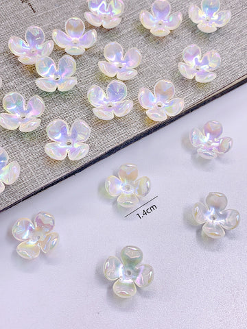 New abs imitation pearl plated color four petal flower imitation pearl straight hole diy dress headwear accessories beads