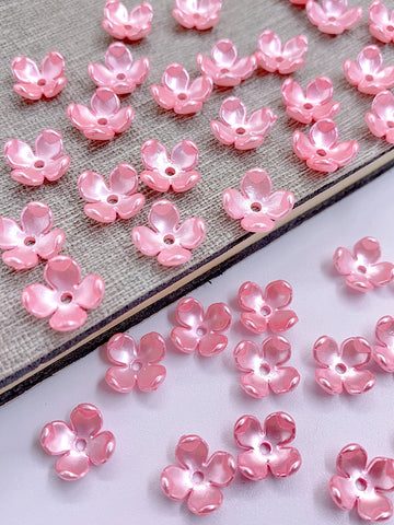 New ABS imitation pearl small four-petal flower straight hole colorful pearl diy headwear accessories beads