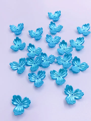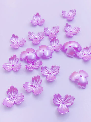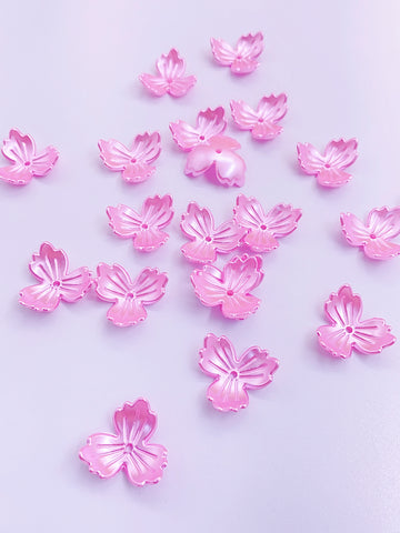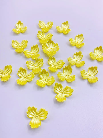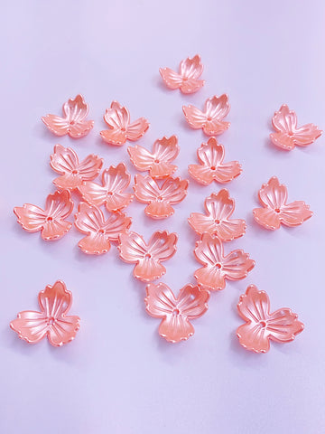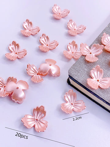 New abs seven-color imitation pearl three-leaf flower jewelry accessories diy simulation flower petals straight hole pearl