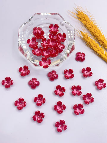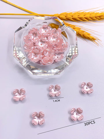 Small multicoloured four-petal flower straight hole abs imitation pearl headdress Hair accessories diy jewelry accessories flower pearl material